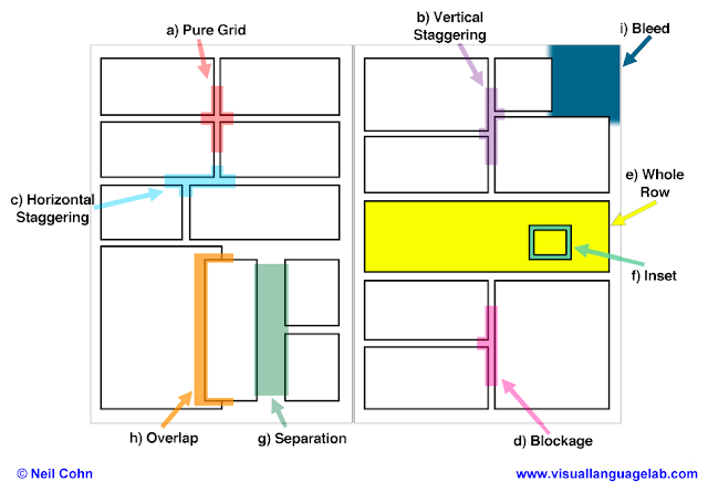 Thanks for the comment and the link Metaning. From the look of your longer version, what you're talking about is the same sorts of groupings that I describe in my original paper on page layout structure, which posited a hierarchic and rule-based underlying structure of layouts on the basis of cues from panel alignments (such as staggering or blockage). It sounds like you're describing largely the same ideas, just illustrated in different ways.