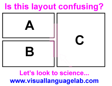 (Note: To my knowledge, there are no controlled experimental results showing that content directs readers’ eyes through layouts. There is one non-controlled study that has some hints about this though.)