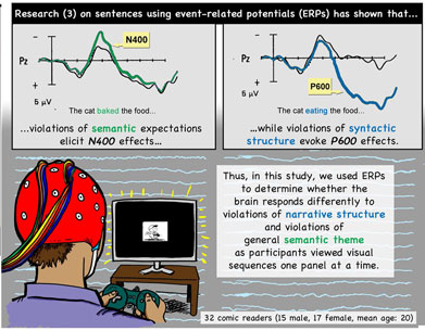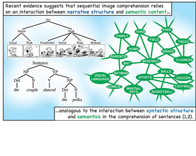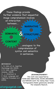 This study explored the relationship between narrative and meaning in sequential image understanding. Sorry the text is so small... it was originally a very large poster! A pdf version of this poster is available here.